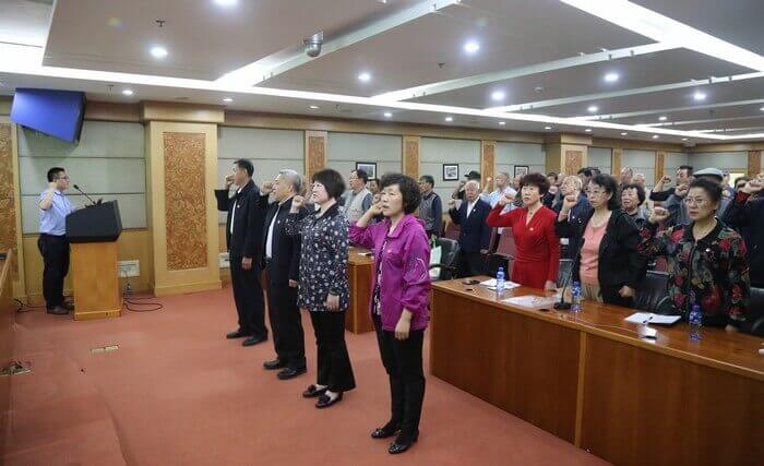 首先离退休支委会向党员大会汇报了近期支部工作开展情况,全体党员庄严宣誓,重温了入党誓词。随后李书记为离退休党员们上了一堂主题为“历史与创新”的精彩党课。